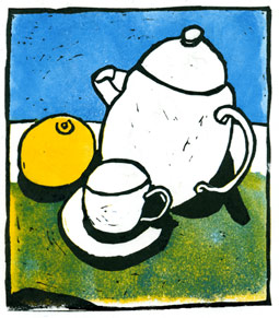 still life with grapefruit linocut 15 x 17 cm [three steps of cutting one printing plate] prints available | back | overview | home |