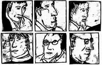 men in January [Männer im Jänner] (Cafè Traxlmayr, Linz)woodcut 17 x 10 cm prints available | back | overview | home |